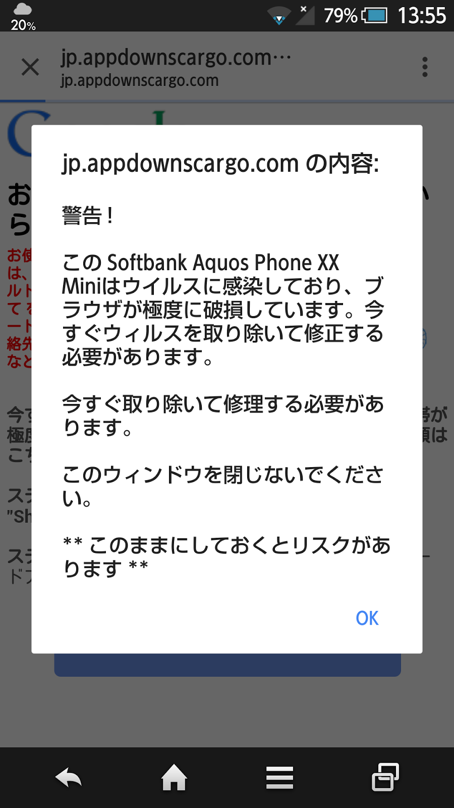 Androidスマホでサイトにアクセスしたらウイルス警告 感染したのか調べてみた Windowsパソコン初心者ナビ