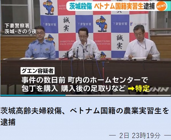 Tweet 茨城 夫婦殺傷 ベトナム人実習生グエン ディン ハイを逮捕 包丁購入 移民問題と実習生制度の闇 Naver まとめ