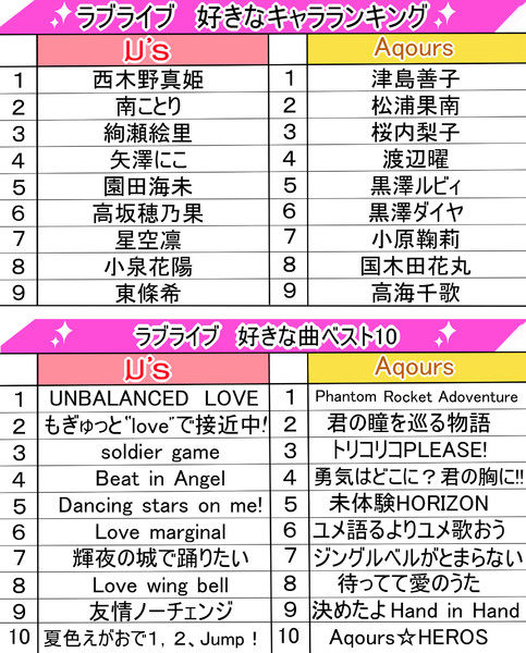 ラブライブ の M Sとaqoursで人気投票をした結果が発表 サンシャインキャラの人気が悲惨なことに はちま起稿