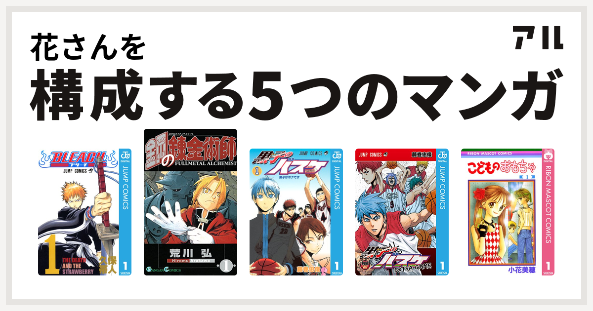 花さんを構成するマンガはbleach 鋼の錬金術師 黒子のバスケ 黒子のバスケ Extra Game こどものおもちゃ 私を構成する5つのマンガ アル